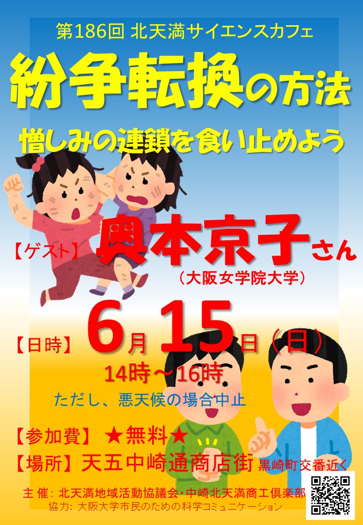 第186回北天満サイエンスカフェ「紛争転換の方法 憎しみの連鎖を食い止めよう」